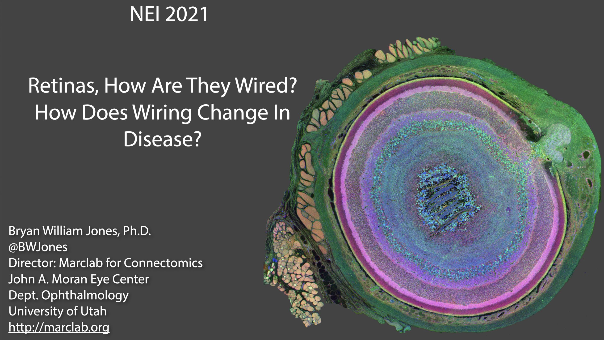PI, Bryan William Jones delivered an invited seminar today at the National Institutes of Health (NIH) / National Eye Institute (NEI) today on Retinas, How Are They Wired? How Does Wiring Change In Disease?