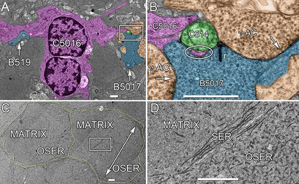 Abstract: Electrical synapses are fundamental components of neural networks. Gap junctions provide the anatomical basis for electrical synapses and are prevalent throughout the neural retina with essential roles in signal transmission. Gap junctions within and between the parallel processing channels afforded by retinal bipolar cells have been reported or predicted, but their roles, partners, and patterns remain largely unknown. Here, we took advantage of the high resolution of Retinal Connectome 1 (RC1) to reconstruct ON cone bipolar cells (CBCs) and map their coupling topologies.
