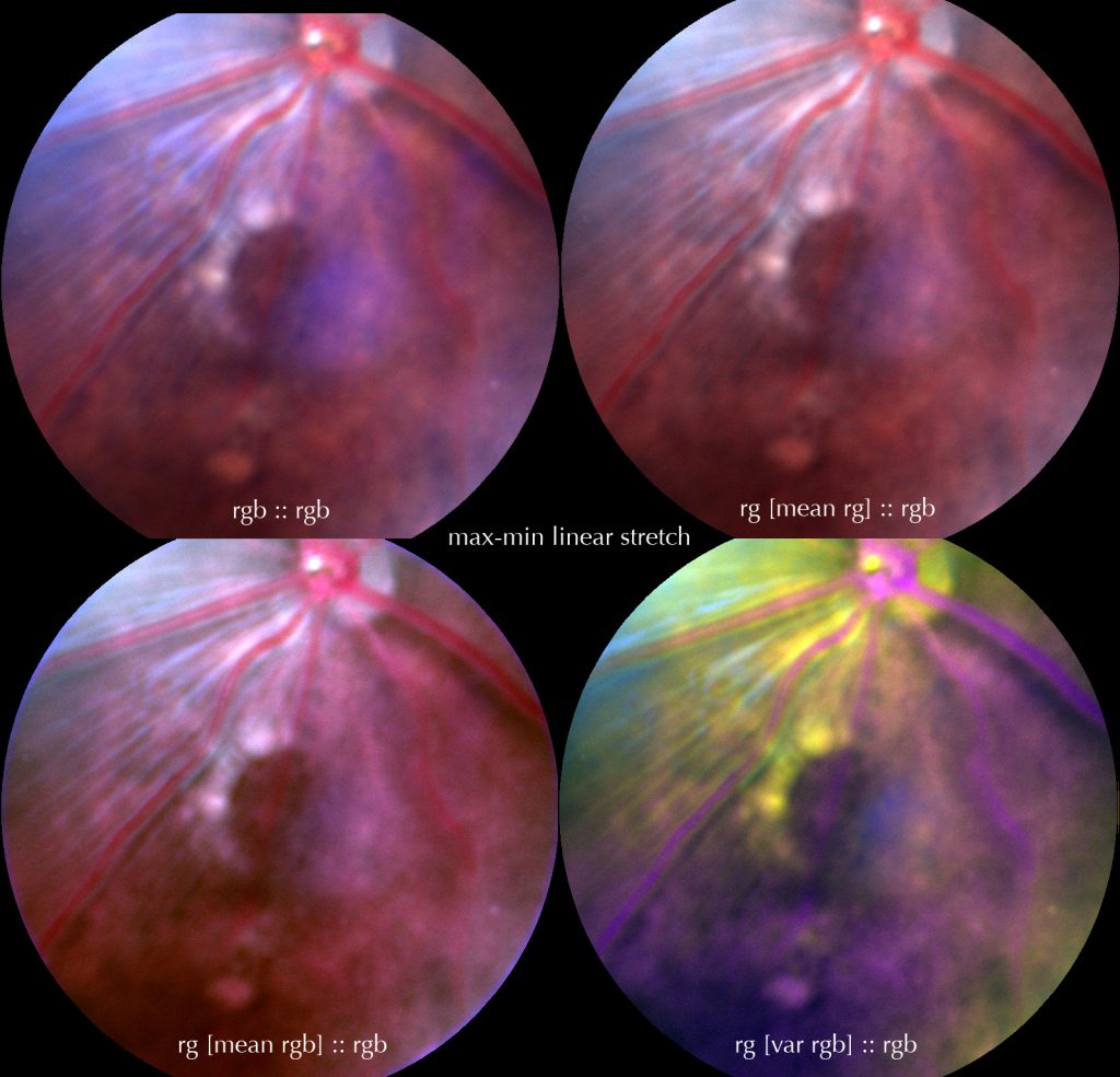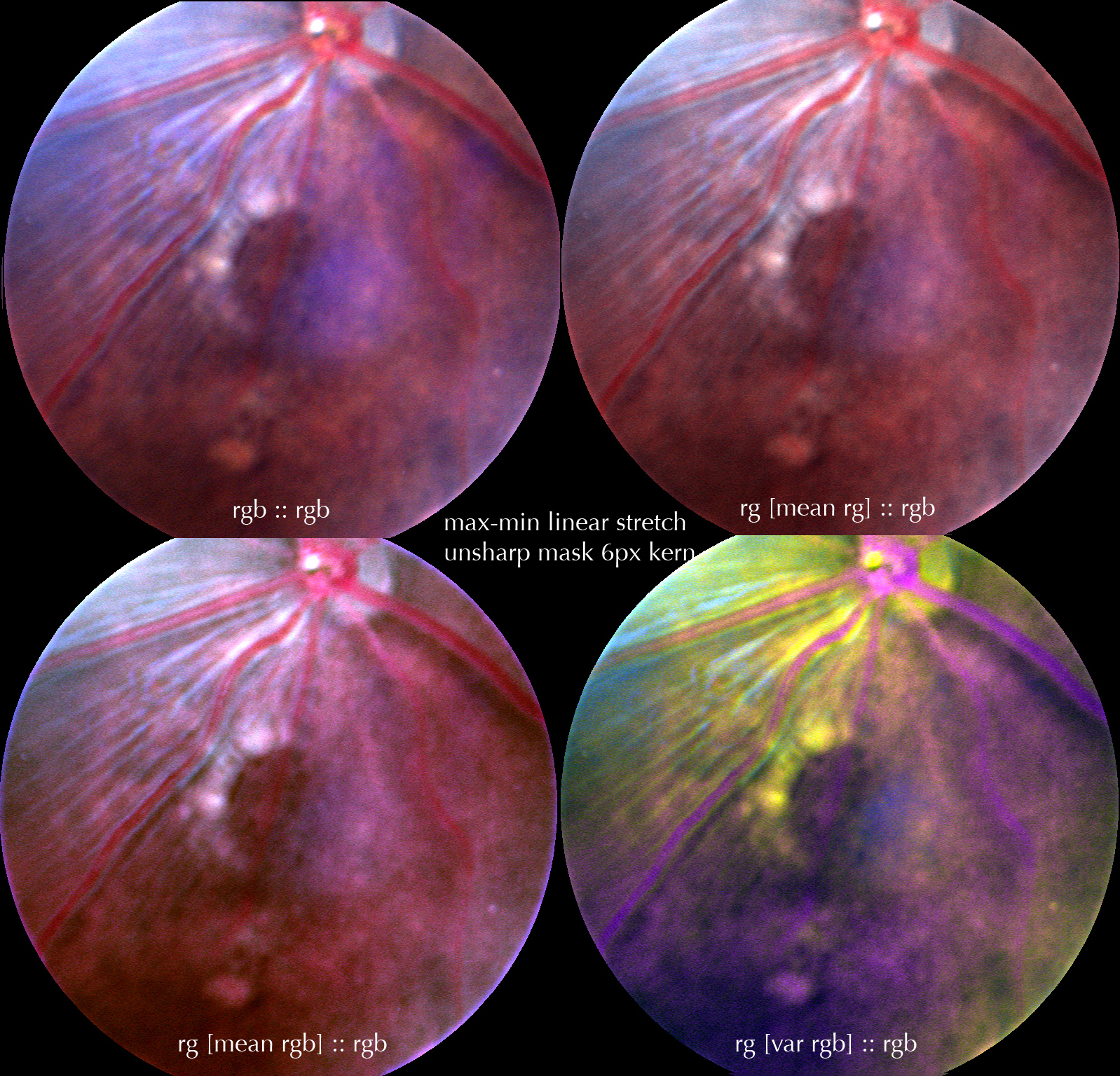 Lower left = rg [mean rgb] :: rgb mapping to suppress blue scatter